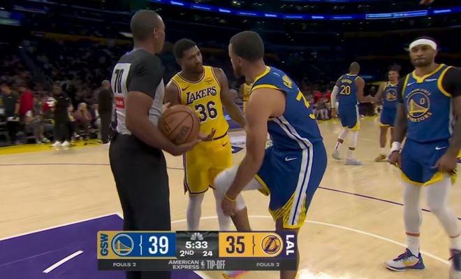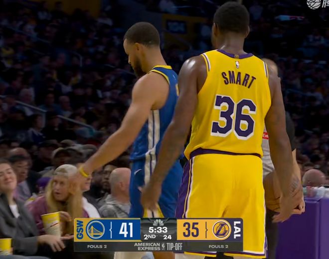 NBA新赛季开始以来的第1个恶意犯规正式诞生了,在湖人对阵勇士的比赛进行到第2节还有5分33秒的时候,裁判怒吹恶犯,斯玛特在防守库里时夹住了库里的胳膊,这次哪怕是湖人的主场,本场比赛的主裁判也不能再视若无睹。