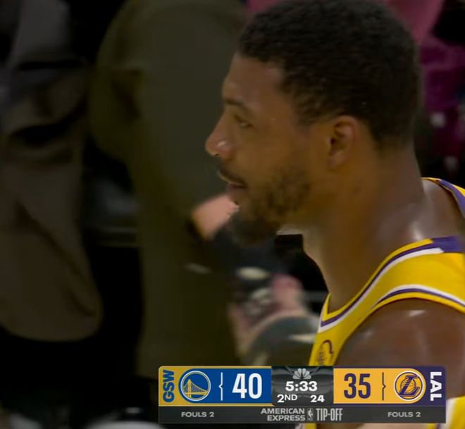 这场比赛是湖人的新赛季主场揭幕战,而这场比赛裁判的吹罚方面也是非常的严格,毕竟第1场球要避免双方发生一些冲突和争议。但是湖人队的斯玛特还是在各种游离挑战裁判的底线,于是这一次裁判没有再纵容他,直接吹了一个一级恶意犯规。
